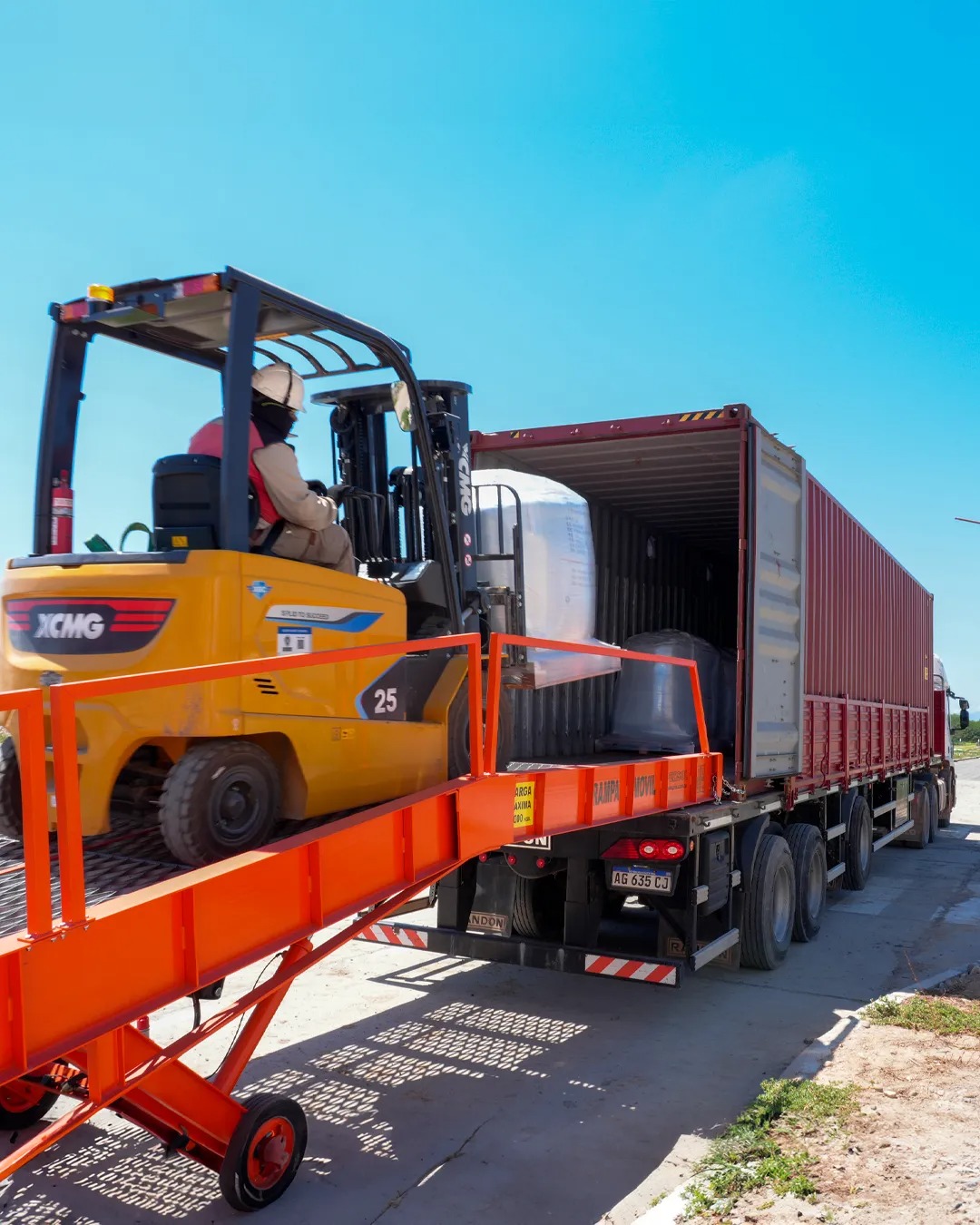 El embarque se estructuró en 10 contenedores, con 24 toneladas por unidad, conteniendo un total de 240 toneladas. La consolidación dentro de planta no fue un detalle menor: significó proteger el producto desde el origen, reducir riesgos en el tramo logístico y garantizar que el cliente reciba el cloruro de litio en las mismas condiciones en que sale de la línea final.