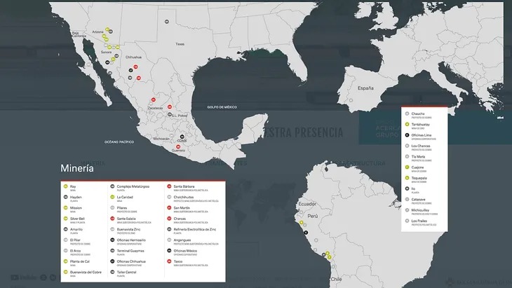 Trenes en minería. Con presencia en México, Perú, EEUU y España, el GMXT se consolida como uno de los cuatro mayores productores de cobre del mundo, líder en reservas globales y con los menores costos de extracción de la industria. Sus principales filiales son Americas Mining Corporation (AMC), Southern Copper Corporation -que agrupa a Minera México y Southern Perú-, ASARCO en EEUU y Minera Los Frailes, en España.